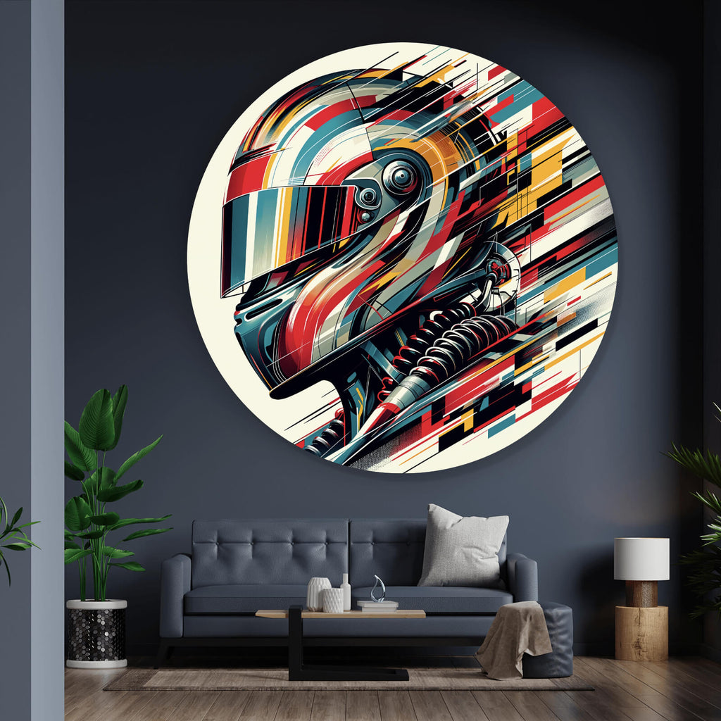 Auf der Suche nach einem ausgefallenen Wandbild als Aluminiumbild? Das Motiv Futuristischer Helm in dynamischer Kunstform als Kreis gefällt dir und du hast nach Wandbildern mit den Wörtern Helm, Grafik, Deometrie, Muster, Streifen, Dynamik, Design, Geschwindigkeit, Technologie und Futuristisch gesucht? Dann ist dieses Aluminiumbild in der Farbe Bunt genau das richtige Wandbild und Dekorelement für dich! Setze ein Highlight an deiner Wand! Das Aluminiumbild Futuristischer Helm in dynamischer Kunstform ist in 5 verschiedenen Größen verfügbar, von klein und dezent bis hin zum XXL Aluminiumbild.