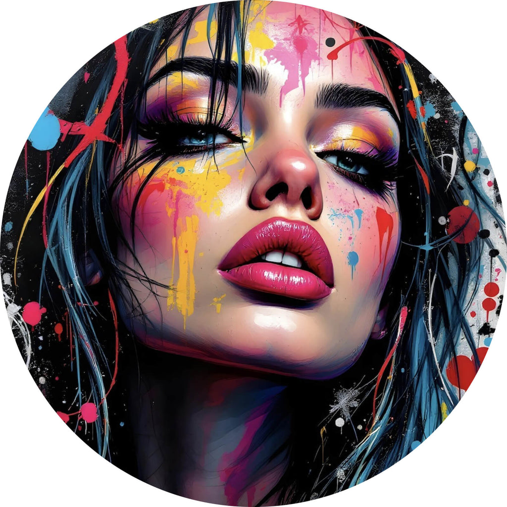 Aluminiumbild gebürstet Buntes Frauenporträt Kreis