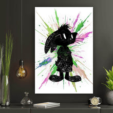 • Lade das Bild in den Galerie-Viewer, Aluminiumbild gebürstet Cartoon Hase mit buntem Farbklecks Hochformat