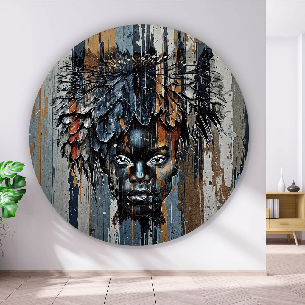 Auf der Suche nach einem ausgefallenen Wandbild als Aluminiumbild gebürstet? Das Motiv Eindrucksvolles Frauengesicht als Kreis gefällt dir und du hast nach Wandbildern mit den Wörtern Frau, Gesicht, Porträt, Afrikanisch, Modern Art und Ausdruck gesucht? Dann ist dieses Aluminiumbild gebürstet in der Farbe Bunt genau das richtige Wandbild und Dekorelement für dich! Setze ein Highlight an deiner Wand! Das Aluminiumbild gebürstet Eindrucksvolles Frauengesicht ist in 5 verschiedenen Größen verfügbar, von klein und dezent bis hin zum XXL Aluminiumbild gebürstet.