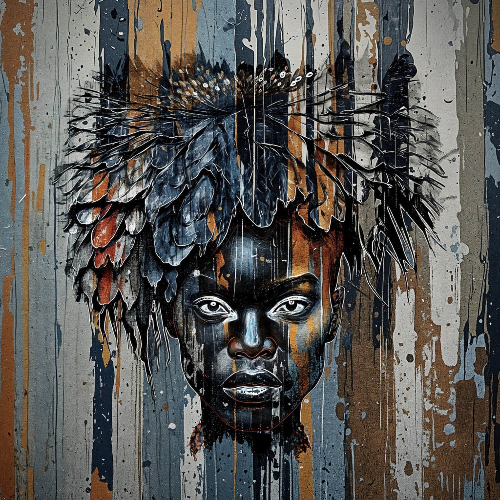 Dieses beeindruckende Wandbild zeigt ein abstraktes Gesicht, das mit einer Vielzahl von Federn verziert ist, die dem Kunstwerk eine dynamische und lebendige Anmutung verleihen. Die Federn sind in einem ausdrucksstarken Stil dargestellt, der sowohl Tiefe als auch Bewegung suggeriert. Das Gesicht selbst ist in einem grungigen Stil gehalten, was dem Bild einen modernen und urbanen Charakter verleiht. Die Kombination aus abstrakten Formen und realistischen Details schafft eine spannende visuelle Spannung, die den Betrachter in ihren Bann zieht. Das Bild eignet sich hervorragend für moderne Wohnräume und Büros und versprüht eine kreative und inspirierende Atmosphäre. Es ist ein Unikat, das sowohl Kunstliebhaber als auch Design-Enthusiasten anspricht und in jedem Raum als stilvolles Statement fungiert. Die kunstvolle Darstellung und die detailreiche Ausführung machen es zu einem Highlight jeder Wanddekoration. Mit seiner einzigartigen Kombination aus Abstraktion und Realismus spricht es die Sinne an und regt die Fantasie an. Dieses Kunstwerk ist mehr als nur Dekoration; es ist ein Ausdruck von Kreativität und Individualität, das jedem Raum eine besondere Note verleiht.