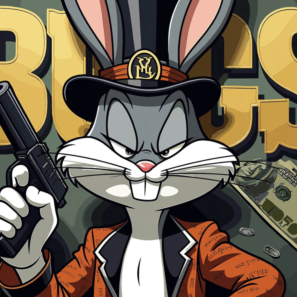 Dieses Wandbild zeigt einen charakteristischen Cartoon-Hasen, der in einem Zylinder und mit einer Pistole dargestellt wird. Das Motiv kombiniert Elemente von Humor und Pop Art und zieht sofort die Aufmerksamkeit auf sich. Der Hase steht im Mittelpunkt des Bildes und strahlt eine selbstbewusste und leicht herausfordernde Haltung aus, die durch seinen Gesichtsausdruck und die Position der Pistole unterstrichen wird. Der Zylinder verleiht dem Hasen einen Hauch von Eleganz und stellt einen faszinierenden Kontrast zu seiner ansonsten verspielten Erscheinung dar. Diese Darstellung vereint klassische Cartoon-Elemente mit moderner Kunst und schafft so ein einzigartiges, visuelles Statement, das sowohl in einem Wohnzimmer als auch in einem Büro oder Hobbyraum perfekt zur Geltung kommt. Die Linienführung ist klar und präzise, während die Komposition dem Bild Tiefe und Dynamik verleiht. Die Materialanmutung des Bildes deutet auf eine hochwertige Drucktechnik hin, die die Details und Texturen des Motivs eindrucksvoll zur Geltung bringt. Dieses Kunstwerk ist ideal für Liebhaber der Popkultur und bietet eine humorvolle und stilvolle Ergänzung zu jeder Wanddekoration.