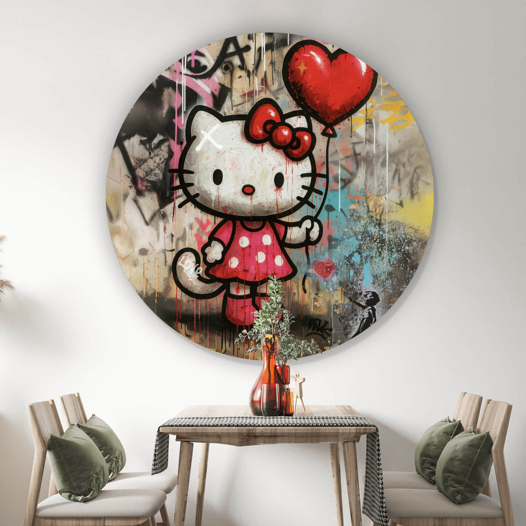Auf der Suche nach einem ausgefallenen Wandbild als Aluminiumbild gebürstet? Das Motiv Ikonisches Katzenmädchen mit roter Schleife Graffiti als Kreis gefällt dir und du hast nach Wandbildern mit den Wörtern Katze, Pop Art, Herzluftballon, Street Art, Graffiti, Urban, Wandkunst, Schleife, Comicfigur, Niedlichkeitskultur, Kleid und Pop Kultur gesucht? Dann ist dieses Aluminiumbild gebürstet in der Farbe Bunt genau das richtige Wandbild und Dekorelement für dich! Setze ein Highlight an deiner Wand! Das Aluminiumbild gebürstet Ikonisches Katzenmädchen mit roter Schleife Graffiti ist in 5 verschiedenen Größen verfügbar, von klein und dezent bis hin zum XXL Aluminiumbild gebürstet.