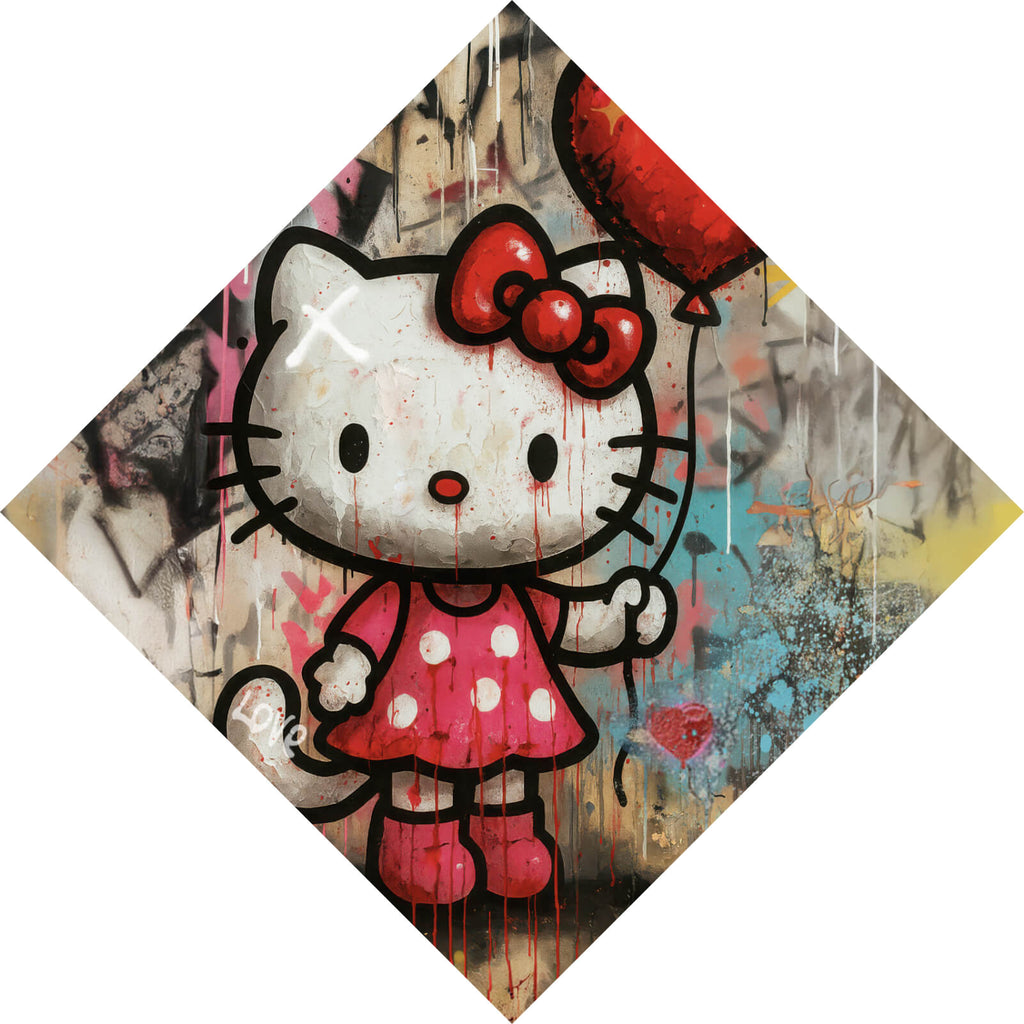 Aluminiumbild gebürstet Ikonisches Katzenmädchen mit roter Schleife Graffiti Raute