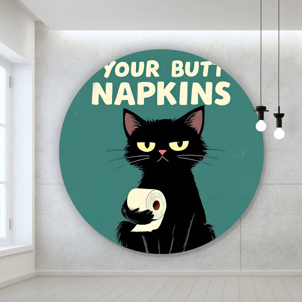 Diese humorvolle Wanddekoration zeigt eine stilisierte Katze, die mit einem sarkastischen Ausdruck eine Rolle Toilettenpapier hält. Das Motiv ist modern und witzig, perfekt, um jedem Raum eine charmante und unterhaltsame Note zu verleihen. Der Text auf dem Bild verstärkt den humorvollen Charakter und macht es zu einem echten Blickfang. Die klare Linienführung und der minimalistische Stil lassen es sowohl in modernen als auch in traditionellen Interieurs gut zur Geltung kommen. Besonders geeignet für Räume, in denen ein Schmunzeln willkommen ist, wie Badezimmer oder Büros, bringt dieses Bild eine spielerische Leichtigkeit mit sich. Es kann auch als originelles Geschenk für Katzenliebhaber oder Menschen mit einem Sinn für Humor dienen. Die Kombination aus Tiermotiv und witzigem Text trifft den Nerv der Zeit und macht es zu einer trendigen Ergänzung jeder Wand. Die Wirkung ist gleichermaßen beruhigend und erheiternd, was es zu einer idealen Wahl für alle macht, die ihrem Alltag eine Portion Humor hinzufügen möchten.