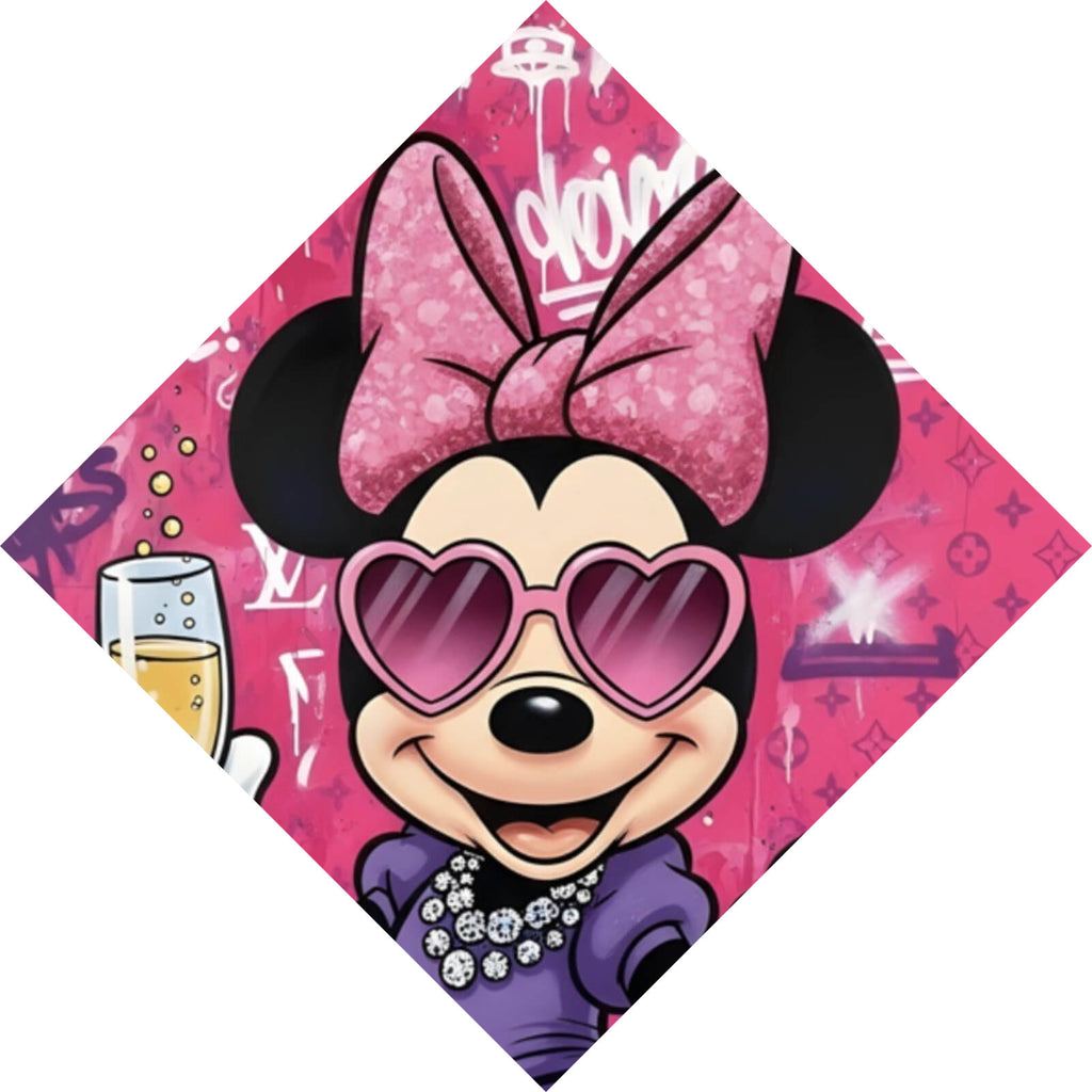 Dieses Wandbild im Pop Art Stil zeigt eine ikonische Cartoon-Figur, die mit einem unverwechselbaren Luxus-Graffiti-Design kombiniert ist. Die Figur trägt ein elegantes Outfit und hat ein fröhliches Lächeln auf den Lippen, während sie ein Glas in der Hand hält, was eine ausgelassene und feierliche Stimmung vermittelt. Im Hintergrund sind dynamische Graffiti-Elemente zu sehen, die dem Kunstwerk eine urbane und trendige Ausstrahlung verleihen. Diese Verschmelzung von Pop Art und Graffiti kreiert ein modernes und stilvolles Statement-Piece, das in jedem Raum Aufmerksamkeit erregen wird. Die verschiedenen Formen und Symbole im Bild ziehen den Blick an und laden dazu ein, die Details zu erkunden. Die Materialanmutung wirkt hochwertig und verleiht dem Raum eine kreative und inspirierende Atmosphäre. Perfekt geeignet für Liebhaber von Urban Art und diejenigen, die ihrem Wohn- oder Arbeitsbereich einen Hauch von Glamour und Kultikonen-Flair verleihen möchten. Dieses Bild ist nicht nur ein dekoratives Element, sondern auch ein Gesprächsstoff, der die Verbindung von Mode, Kunst und Popkultur eindrucksvoll darstellt.