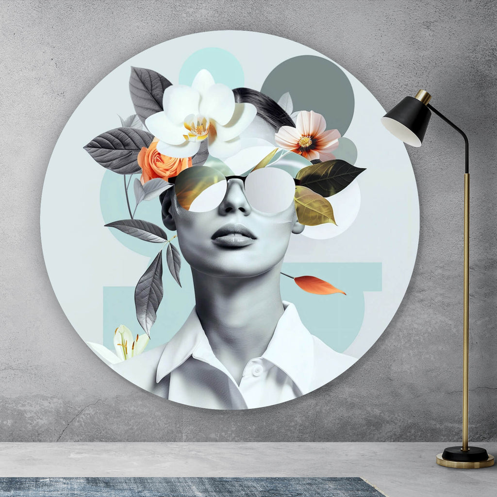 Aluminiumbild gebürstet Modernes  Porträt mit Blumenarrangement Kreis