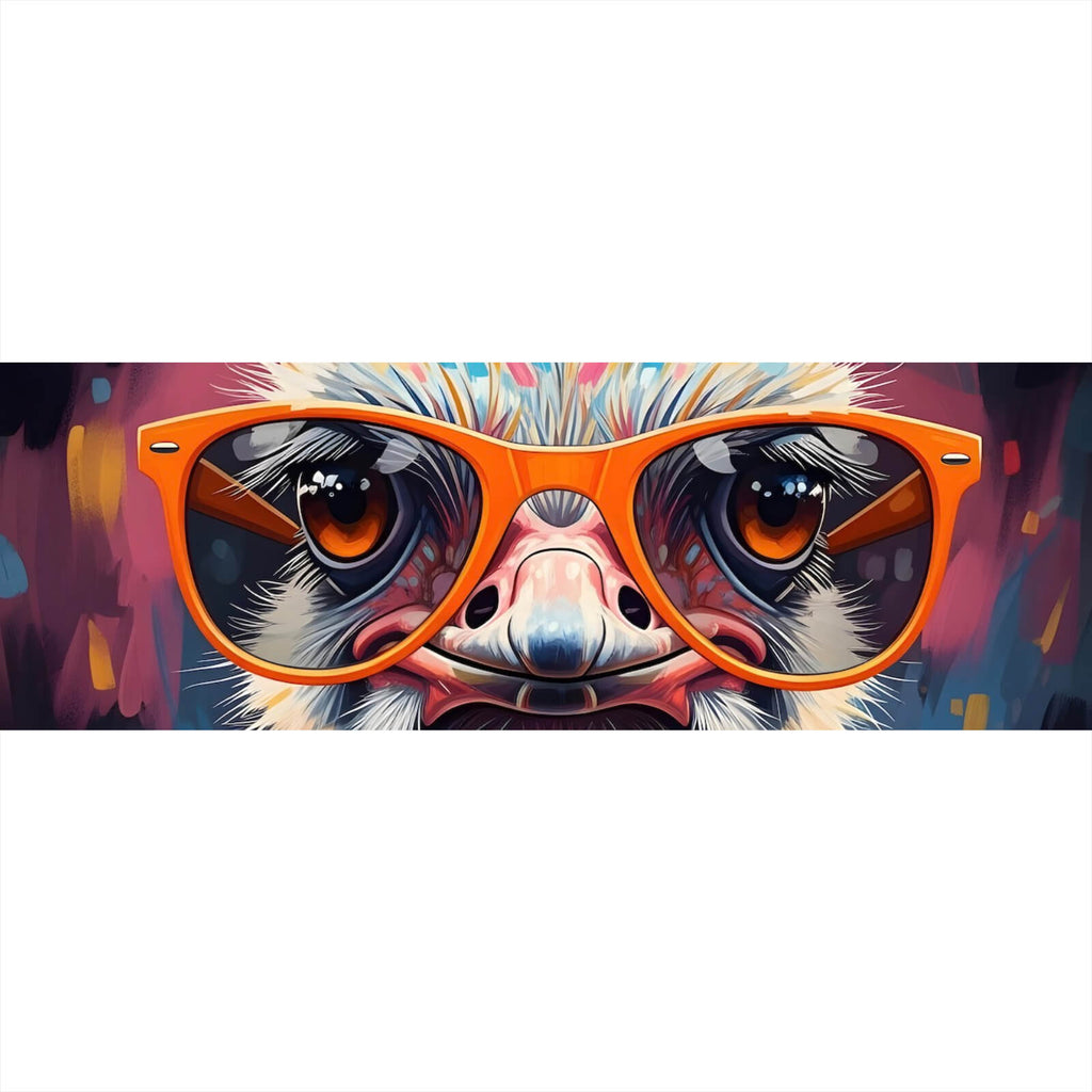 Dieses beeindruckende Wandbild zeigt einen stilvollen Strauß, der in einem modernen und poppigen Kunststil gestaltet ist. Der Strauß trägt eine auffällige Sonnenbrille, die ihm einen humorvollen und einzigartigen Ausdruck verleiht. Die Darstellung ist lebendig und dynamisch, mit kunstvoll gestalteten Details, die das Federkleid des Straußes akzentuieren und ihm eine außergewöhnliche Textur verleihen. Die Komposition erzeugt eine faszinierende Tiefe und zieht den Betrachter sofort in ihren Bann. Dieses Bild ist ein perfektes Beispiel für moderne Pop Art, die durch ihre kreative und mutige Darstellung besticht. Es eignet sich hervorragend als dekoratives Element in verschiedenen Räumen wie Wohnzimmer, Büro oder Kinderzimmer und bringt dort eine frische und lebendige Atmosphäre. Durch seine einzigartige Kombination aus Tiermotiven und humorvollem Design wird es zum absoluten Blickfang und verleiht jedem Raum eine individuelle Note. Die hochwertige künstlerische Ausführung macht es zu einem idealen Highlight in jeder modernen Wohnkultur. Dieses Wandbild ist nicht nur ein Ausdruck von Stil und Kreativität, sondern auch ein Statement für alle, die das Außergewöhnliche lieben.
