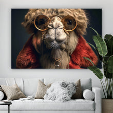 - Motivname: Stylisches Kamel mit Brille und rotem Mantel