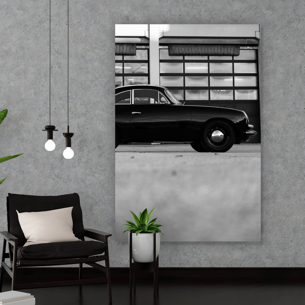 Auf der Suche nach einem ausgefallenen Wandbild als Aluminiumbild? Das Motiv Klassisches Auto vor Werkstattgebäude im Hochformat gefällt dir und du hast nach Wandbildern mit den Wörtern Auto, Fahrzeug, Oldtimer, Garage, Werkstatt, Technik, Klassiker, Retro, Mechanik und Sportwagen gesucht? Dann ist dieses Aluminiumbild in der Farbe Schwarz-Weiß genau das richtige Wandbild und Dekorelement für dich! Setze ein Highlight an deiner Wand! Das Aluminiumbild Klassisches Auto vor Werkstattgebäude ist in 4 verschiedenen Größen verfügbar, von klein und dezent bis hin zum XXL Aluminiumbild.