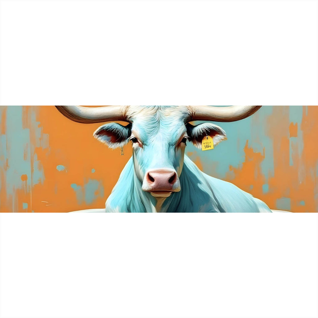 Dieses beeindruckende Wandbild zeigt eine humorvolle und kreative Darstellung einer Kuh, die in einer Badewanne sitzt. Das Motiv vereint Elemente von Modern Art und Pop Art, wodurch es zu einem einzigartigen Highlight in jedem Raum wird. Die Kuh, mit ihren majestätischen Hörnern, sitzt entspannt und vermittelt eine skurrile, aber zugleich stilvolle Atmosphäre. Diese kreative Komposition strahlt eine spielerische und entspannte Stimmung aus, die perfekt für moderne und trendbewusste Einrichtungen geeignet ist. Die Badewanne im Bild verstärkt den Eindruck von Humor und Unbeschwertheit, während der Hintergrund einen kunstvollen Kontrast bietet, der die Szene lebendig macht. Das Wandbild eignet sich ideal für Räume, die einen Hauch von Kreativität und Humor benötigen, wie Wohnzimmer, Büro oder Badezimmer. Die Kombination aus Tiermotiv und Badewanne macht dieses Bild zu einem echten Hingucker, der Gesprächsstoff bietet und jedem Raum eine besondere Note verleiht. Die hochwertige Ausführung und das originelle Motiv sorgen dafür, dass dieses Wandbild nicht nur dekorativ, sondern auch inspirierend wirkt. Ob als stilvolle Dekoration oder als Ausdruck persönlichen Geschmacks, dieses Bild ist ein Muss für Liebhaber moderner und ungewöhnlicher Kunst.