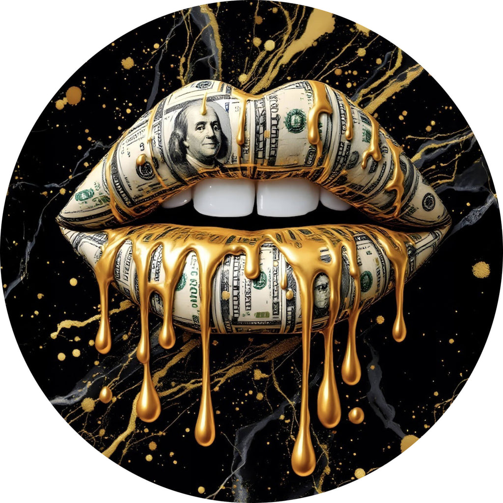 Aluminiumbild Luxuriöse Geldlippen mit goldenen Akzenten Kreis