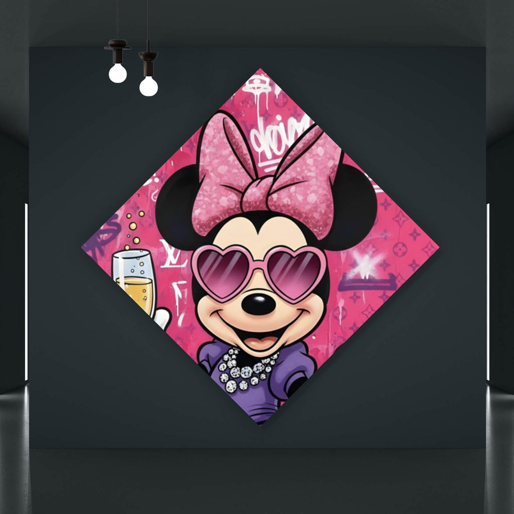Auf der Suche nach einem ausgefallenen Wandbild als Aluminiumbild? Das Motiv Luxus Maus als Raute gefällt dir und du hast nach Wandbildern mit den Wörtern Maus, Luxus, Sekt, Style, Cartoon, Statement, Fashion, Glamour, Zeichentrick, Brille, Trinken, Feiern, Money und Figur gesucht? Dann ist dieses Aluminiumbild in der Farbe Bunt genau das richtige Wandbild und Dekorelement für dich! Setze ein Highlight an deiner Wand! Das Aluminiumbild Luxus Maus ist in 4 verschiedenen Größen verfügbar, von klein und dezent bis hin zum XXL Aluminiumbild.