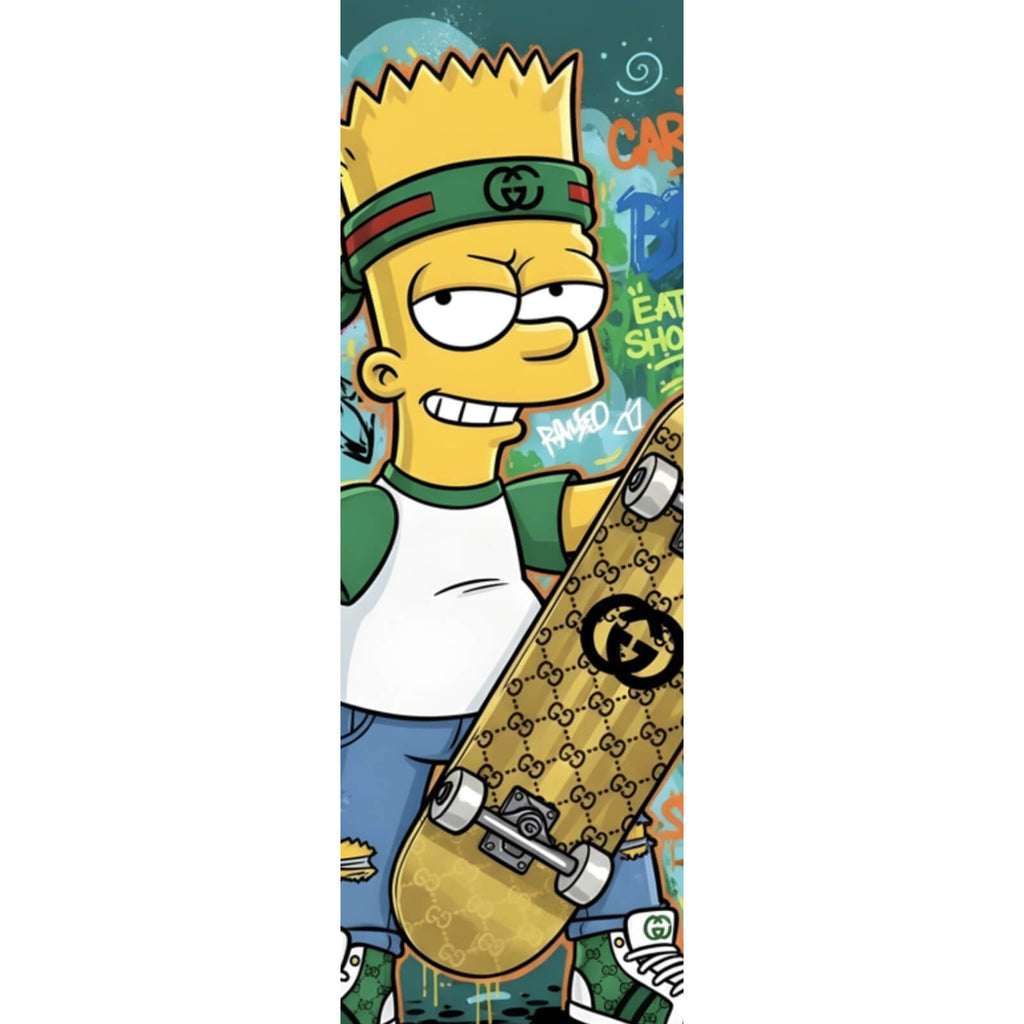 Dieses Wandbild zeigt ein auffälliges und lebendiges Cartoon-Motiv, das in einem modernen Graffiti-Stil gehalten ist. Im Zentrum steht eine ikonische Figur, die ein Skateboard lässig in der Hand hält, was dem Bild eine dynamische und jugendliche Ausstrahlung verleiht. Die umgebenden Graffiti-Elemente verstärken die urbane Atmosphäre und verleihen dem Raum, in dem dieses Bild präsentiert wird, einen Hauch von Rebellion und Kreativität. Die geschwungenen und kantigen Formen der Graffiti-Schriften ergänzen das zentrale Motiv perfekt und schaffen ein harmonisches und dennoch energiegeladenes Gesamtbild. Der Stil des Bildes ist eine moderne Interpretation von Pop Art und spiegelt aktuelle Trends wider, wodurch es sich ideal für kreative Räume wie Kinderzimmer oder Hobbyräume eignet. Die Tiefe und Textur des Designs verleihen dem Wandbild eine besondere Materialanmutung, die dem Raum eine lebendige und inspirierende Atmosphäre verleiht. Dieses Kunstwerk ist nicht nur ein Blickfang, sondern auch ein Ausdruck von Individualität und Stilbewusstsein, perfekt für alle, die ihre Umgebung mit einem zeitgemäßen und ausdrucksstarken Kunstwerk bereichern möchten.