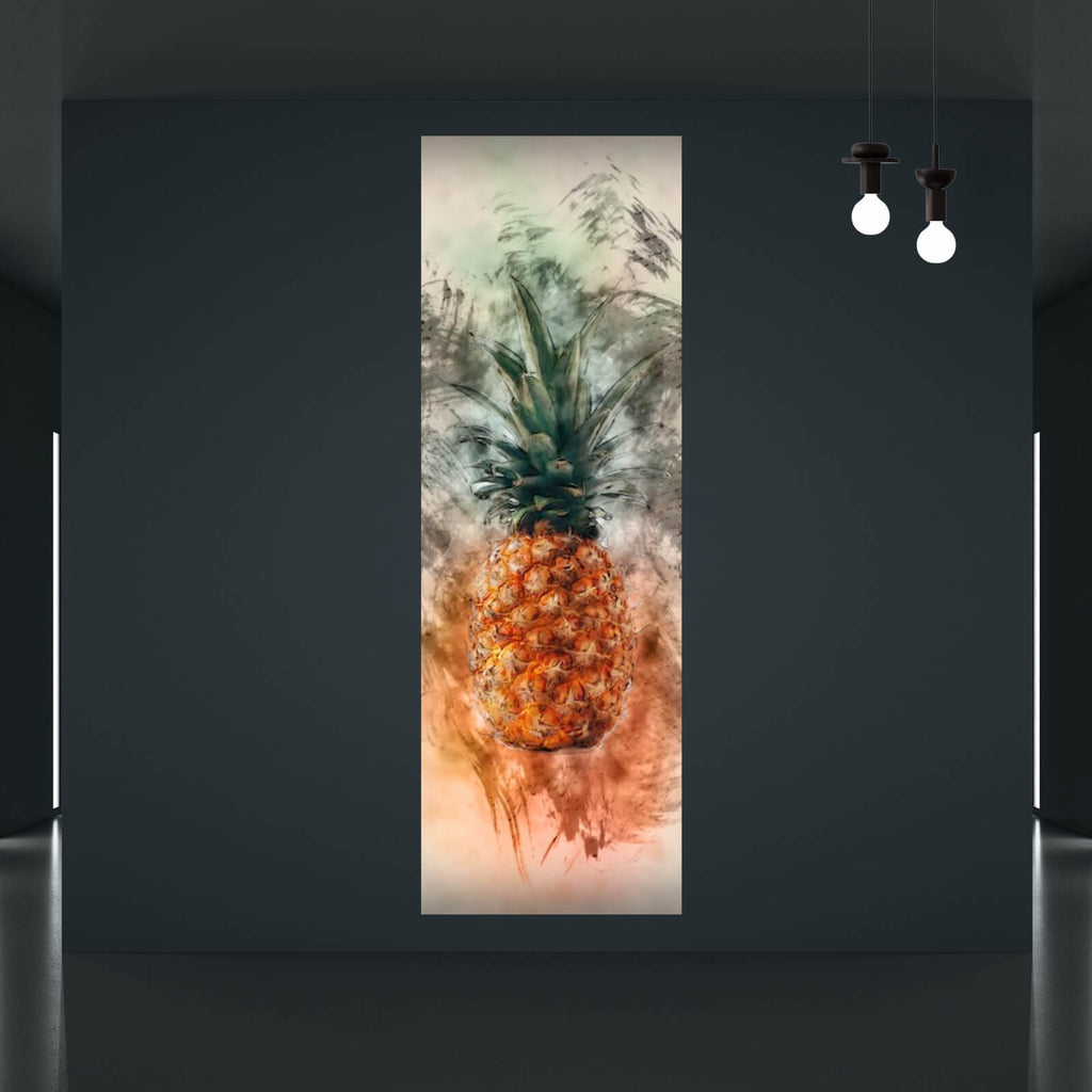 Das Leinwandbild Ananas Abstrakt im Panorama Hoch hat eine matte Oberfläche und wird auf qualitativ hochwertigem Canvas-Leinenstoff mit 260 g/m² digital gedruckt. Das Leinwandbild wird anschließend auf einen 2 cm starken Holzrahmen aufgebracht und rückseitig gespannt. Die Ecken werden fachgerecht umgeschlagen. Das Leinwandbild wird fertig montiert zu dir geliefert. Leinwandbilder sind eine preiswerte Art, deinen Raum in ein Highlight zu verwandeln und erzielen durch die Tiefe eine tolle 3D-Wirkung. Auch super geeignet zum Abdecken der Haustechnik wie Stromkästen. Leinwandbilder, die auch nach Jahren noch wie neu aussehen und strahlen.