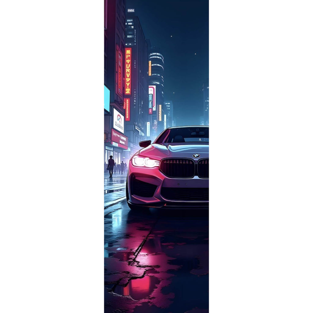 • Lade das Bild in den Galerie-Viewer, Leinwandbild Auto in belebter nächtlicher Stadt Panorama Hoch