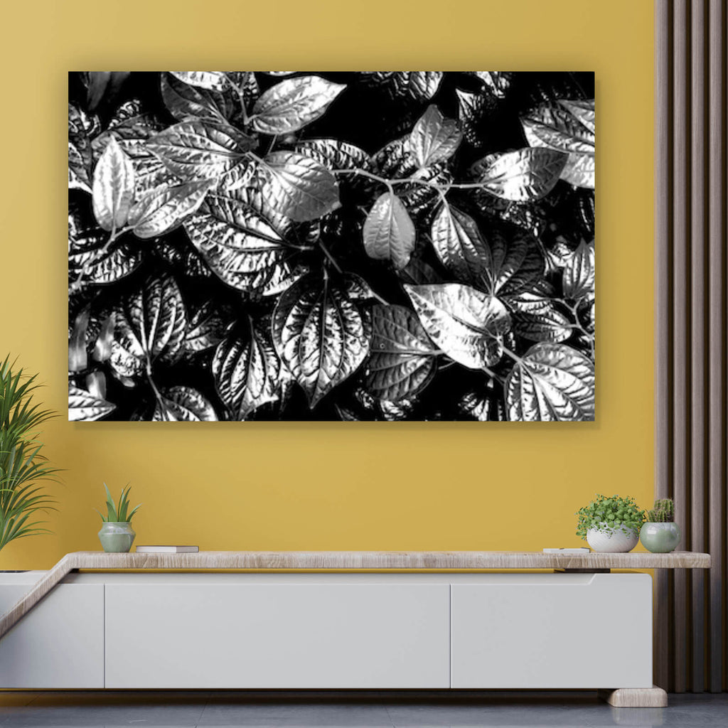 Auf der Suche nach einem ausgefallenen Wandbild als Leinwandbild? Das Motiv Blätterwald im Querformat gefällt dir und du hast nach Wandbildern mit den Wörtern Blätter, Pflanzen, Botanik, Natur und Leaf gesucht? Dann ist dieses Leinwandbild in der Farbe Schwarz-Weiß genau das richtige Wandbild und Dekorelement für dich! Setze ein Highlight an deiner Wand! Das Leinwandbild Blätterwald ist in 4 verschiedenen Größen verfügbar, von klein und dezent bis hin zum XXL Leinwandbild.