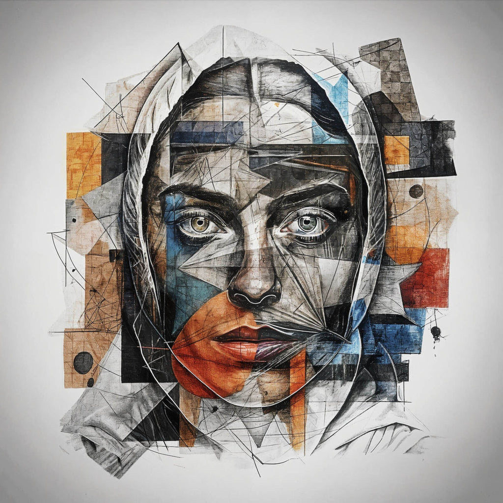 Dieses eindrucksvolle Wandbild zeigt ein abstraktes Porträt, das durch seine moderne, kreative Gestaltung sofort ins Auge fällt. Das Gesicht, kunstvoll aus geometrischen Formen zusammengesetzt, kombiniert verschiedene Stilelemente, die eine faszinierende Tiefe und Komplexität erzeugen. Die Linien und Formen des Bildes schaffen eine dynamische Struktur, die den Blick des Betrachters fesselt und die Aufmerksamkeit auf die fein detaillierten Gesichtszüge lenkt. Diese Kunstwerk wirkt sowohl kraftvoll als auch mysteriös und verleiht jedem Raum eine stilvolle, anspruchsvolle Atmosphäre. Es eignet sich hervorragend für moderne Wohnräume, Büros oder Praxen, in denen es als Blickfang dient und gleichzeitig eine inspirierende Umgebung schafft. Die Komposition zeigt eine harmonische Balance zwischen abstrakter Kunst und realistischer Darstellung, was dem Bild einen einzigartigen Charakter verleiht. Die Anmutung des Materials vermittelt einen Hauch von Raffinesse und Eleganz, während die unterschiedlichen Formen und Linien im Bild eine lebendige Energie ausstrahlen. Ein perfektes Beispiel für die Verschmelzung von Kreativität und Kunst, das sowohl Kunstliebhaber als auch Designenthusiasten anspricht und inspiriert.