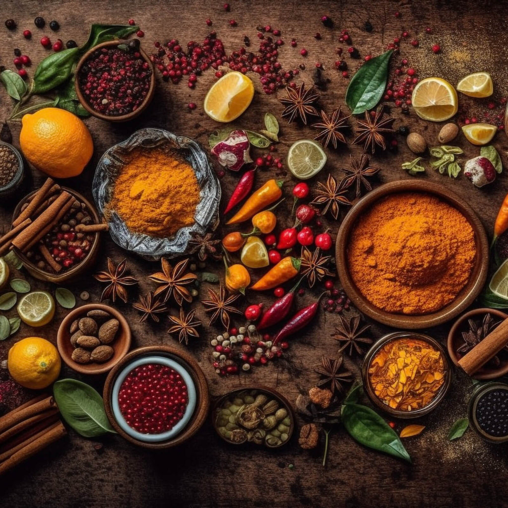 Dieses beeindruckende Wandbild zeigt eine Vielzahl exotischer Gewürze kunstvoll arrangiert auf einem rustikalen Holztisch. Die Komposition aus verschiedenen Formen und Texturen verleiht dem Bild eine lebendige und einladende Atmosphäre. Das Bild fängt die Essenz von kulinarischer Vielfalt und kreativer Gestaltung ein, indem es eine Vielzahl von Gewürzen und Zutaten darstellt, die in harmonischem Einklang miteinander stehen. Die Anordnung der Elemente und die natürliche Materialanmutung des Holztisches schaffen eine warme und einladende Stimmung, die ideal für Küchen, Esszimmer oder gastronomische Einrichtungen geeignet ist. Die Detailgenauigkeit der verschiedenen Gewürze und deren Präsentation lassen den Betrachter in eine Welt voller Aromen und Geschmacksnoten eintauchen, was dem Raum Tiefe und Charakter verleiht. Dieses Kunstwerk ist mehr als nur eine Dekoration; es ist eine Einladung, die Sinne zu beleben und die Schönheit der Natur in den Alltag zu integrieren. Die Kombination aus traditionellem und modernem Stil macht dieses Bild zu einem perfekten Akzent für jedes Interieur, das sowohl Ästhetik als auch Funktionalität vereint.