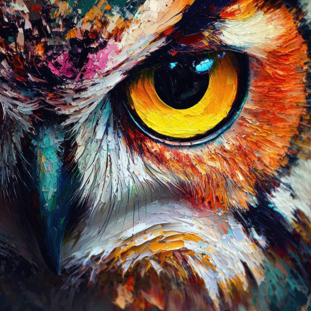 - Motivname: Faszinierendes buntes Eulen Porträt