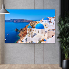 Auf der Suche nach einem ausgefallenen Wandbild als Leinwandbild? Das Motiv Griechische Stadt auf Santorini im Querformat gefällt dir und du hast nach Wandbildern mit den Wörtern Insel, Meer, Griechenland, Stadt, Kirche, Küste, Oia, Sommer, Tourismus, Urlaub und Architektur gesucht? Dann ist dieses Leinwandbild in den Farben Weiß und Blau genau das richtige Wandbild und Dekorelement für dich! Setze ein Highlight an deiner Wand! Das Leinwandbild Griechische Stadt auf Santorini ist in 5 verschiedenen Größen verfügbar, von klein und dezent bis hin zum XXL Leinwandbild.