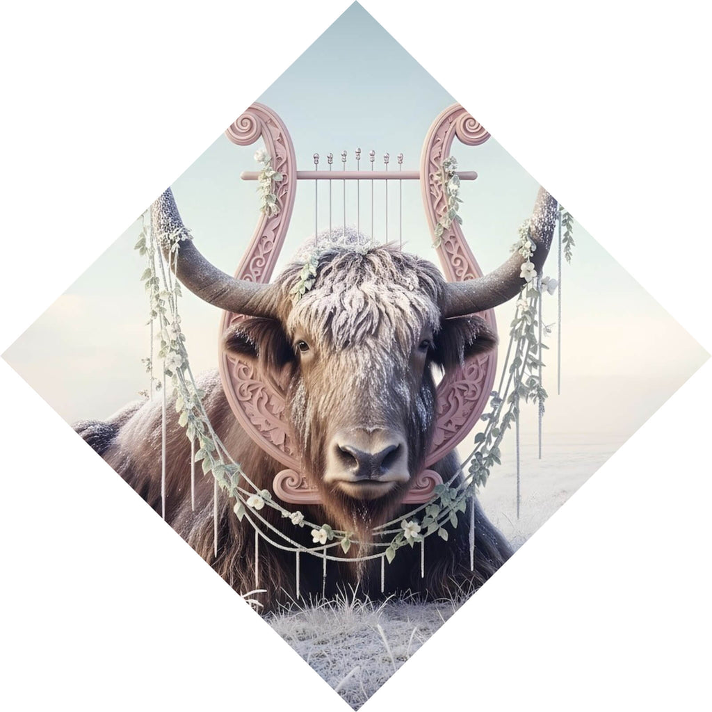 Dieses beeindruckende Wandbild zeigt ein majestätisches Hochlandrind, das in einer surrealen und doch harmonischen Komposition mit einer dekorativen Harfe dargestellt wird. Die Harfe, kunstvoll mit floralen Elementen verziert, umrahmt den Kopf des Rindes und verleiht dem Bild eine einzigartige künstlerische Note. Das Motiv strahlt Ruhe und Gelassenheit aus, während die sanften Kurven und detaillierten Strukturen der Harfe die Eleganz des Tieres unterstreichen. Diese Kombination von Natur und Kunst schafft eine tiefgreifende Symbolik, die sowohl traditionell als auch modern wirkt. Das Bild eignet sich hervorragend als dekoratives Element in Wohnräumen oder Büros, wo es als Inspiration und Gesprächsstoff dienen kann. Die kunstvolle Darstellung des Tieres in Verbindung mit der Harfe vermittelt eine Atmosphäre von Anmut und Kreativität, die den Betrachter in eine Welt der Fantasie und Ästhetik entführt. Die detaillierte Ausarbeitung und die harmonische Verbindung von Tier und Kunstobjekt machen dieses Wandbild zu einem wahren Kunstwerk, das sowohl für Naturliebhaber als auch für Kunstenthusiasten von großem Interesse ist.