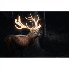 Auf der Suche nach einem ausgefallenen Wandbild als Leinwandbild? Das Motiv Magischer Hirsch im Querformat gefällt dir und du hast nach Wandbildern mit den Wörtern Fantasie, Digital Art, Hirsch, Tier und Wald gesucht? Dann ist dieses Leinwandbild in den Farben Schwarz, Beige, Braun, Gold und Gelb genau das richtige Wandbild und Dekorelement für dich! Setze ein Highlight an deiner Wand! Das Leinwandbild Magischer Hirsch ist in 4 verschiedenen Größen verfügbar, von klein und dezent bis hin zum XXL Leinwandbild.