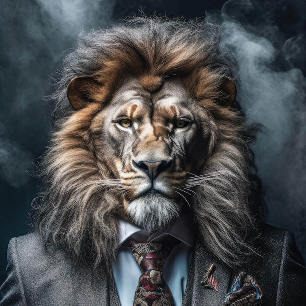 - Motivname: Edles Löwenporträt im eleganten Anzug