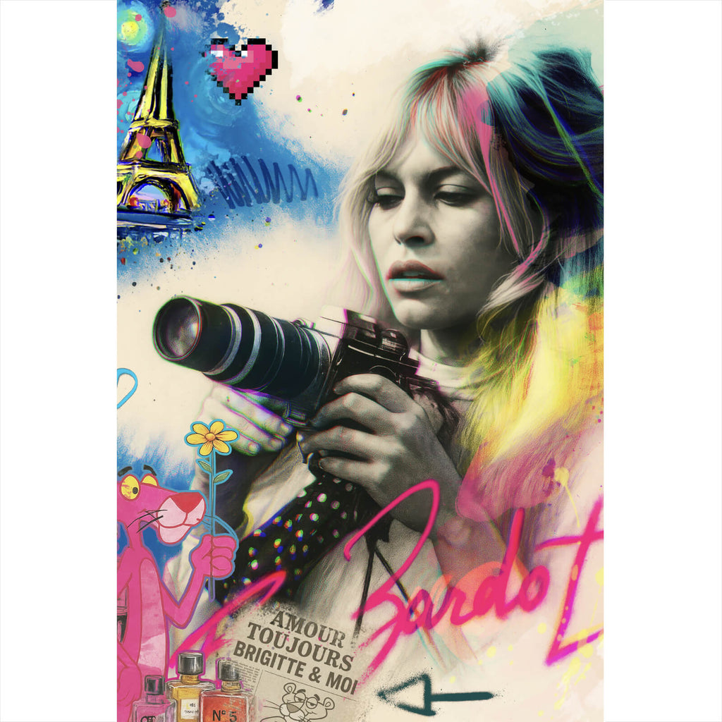 Auf der Suche nach einem ausgefallenen Wandbild als Poster? Das Motiv Französische Film Ikone im Graffiti Stil im Hochformat gefällt dir und du hast nach Wandbildern mit den Wörtern Retro, Frankreich, Eifelturm, Rosa, Panther, Frau, Paris, Kunst, Graffiti, 60er Jahre, Mode, Ikone, Fotoapperat, Fotografie, Illustration, Sexsymbol und Blondine gesucht? Dann ist dieses Poster in der Farbe Bunt genau das richtige Wandbild und Dekorelement für dich! Setze ein Highlight an deiner Wand! Das Poster Französische Film Ikone im Graffiti Stil ist in 4 verschiedenen Größen verfügbar, von klein und dezent bis hin zum XXL Poster.