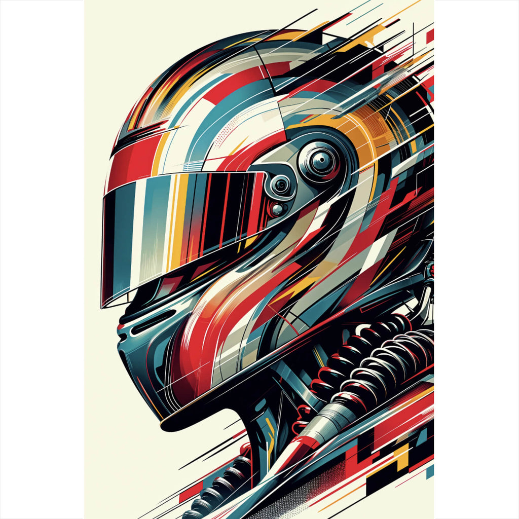 Auf der Suche nach einem ausgefallenen Wandbild als Poster? Das Motiv Futuristischer Helm in dynamischer Kunstform im Hochformat gefällt dir und du hast nach Wandbildern mit den Wörtern Helm, Grafik, Deometrie, Muster, Streifen, Dynamik, Design, Geschwindigkeit, Technologie und Futuristisch gesucht? Dann ist dieses Poster in der Farbe Bunt genau das richtige Wandbild und Dekorelement für dich! Setze ein Highlight an deiner Wand! Das Poster Futuristischer Helm in dynamischer Kunstform ist in 4 verschiedenen Größen verfügbar, von klein und dezent bis hin zum XXL Poster.