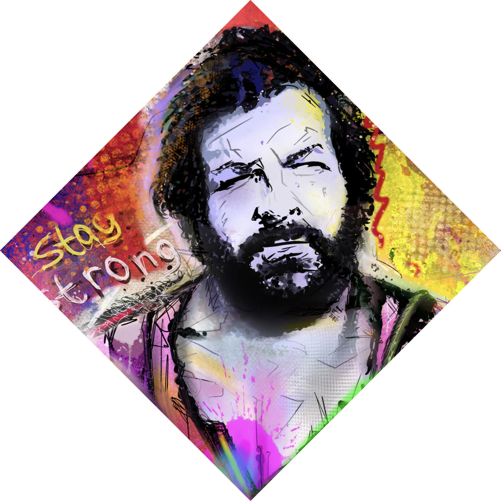Auf der Suche nach einem ausgefallenen Wandbild als Poster? Das Motiv Portrait Schauspieler in Graffiti Optik als Raute gefällt dir und du hast nach Wandbildern mit den Wörtern Bud, Filmstar, Retro, Boxen, Kräftig, Stark, Portrait, Mann, Bart, Modern, Graffiti, Pop Art, Kreativ, Kunst und Stay Strong gesucht? Dann ist dieses Poster in der Farbe Bunt genau das richtige Wandbild und Dekorelement für dich! Setze ein Highlight an deiner Wand! Das Poster Portrait Schauspieler in Graffiti Optik ist in 2 verschiedenen Größen verfügbar, von klein und dezent bis hin zum XXL Poster.