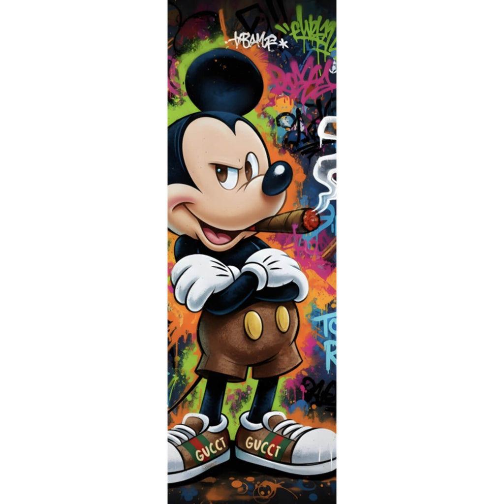 Dieses Wandbild zeigt einen ikonischen Charakter im modernen Graffiti-Stil, der sich perfekt als auffälliges Statement-Piece eignet. Der Charakter steht im Mittelpunkt des Bildes und ist von lebhaften, dynamischen Graffiti-Elementen umgeben, die das Bild zu einem echten Hingucker machen. Durch den urbanen Pop-Art-Stil wirkt das Bild sowohl zeitgenössisch als auch kunstvoll, was es ideal für moderne Räume macht. Die Mischung aus abstrakten Formen und klaren Linien verleiht ihm eine besondere Tiefe und Struktur, die das Bild lebendig erscheinen lässt. Die Materialanmutung ist hochwertig, was dem Bild eine exklusive und stilvolle Ausstrahlung verleiht. Es eignet sich hervorragend für Räume, die eine kreative und trendige Atmosphäre ausstrahlen sollen, wie Wohnzimmer, Bars oder Büros. Dieses Kunstwerk ist nicht nur dekorativ, sondern auch ein Ausdruck von Individualität und modernem Lebensstil. Die Kombination aus Grunge-Elementen und Pop-Art macht es zu einem vielseitigen Kunstwerk, das in verschiedenen Einrichtungskonzepten integriert werden kann. Das Bild hat eine starke Präsenz und zieht die Aufmerksamkeit auf sich, wodurch es zu einem zentralen Punkt in jedem Raum wird. Es ist ein Muss für Kunstliebhaber, die nach etwas Besonderem und Einzigartigem suchen, um ihre Wanddekoration auf ein neues Niveau zu heben.