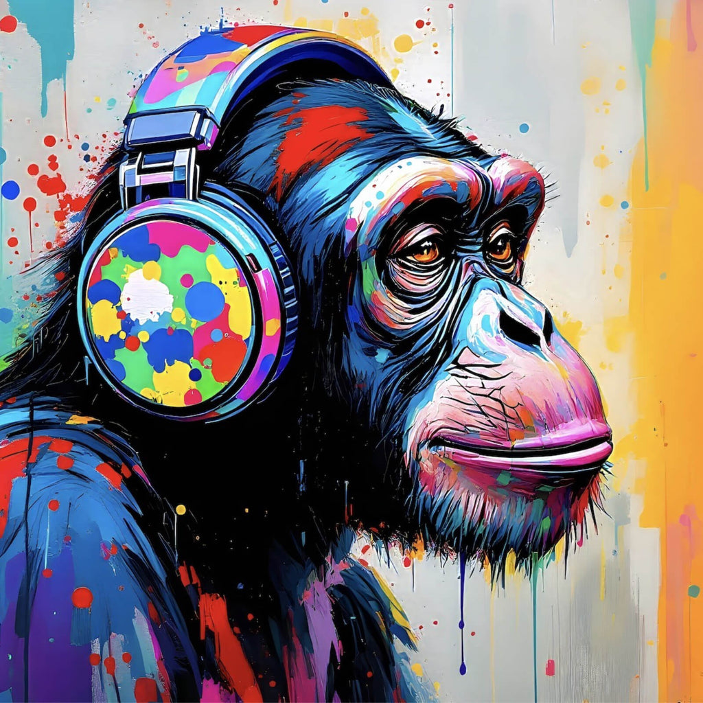 Dieses beeindruckende Wandbild zeigt einen Affen mit Kopfhörern in einem markanten Pop Art Stil. Die Darstellung kombiniert auf faszinierende Weise Elemente der modernen Kunst mit einem tierischen Motiv, was dem Bild eine außergewöhnliche Ausdruckskraft verleiht. Die Kopfhörer, die der Affe trägt, symbolisieren eine Verbindung zur Musik und schaffen eine dynamische Atmosphäre, die sowohl kreativ als auch inspirierend wirkt. Die künstlerische Anmutung des Bildes zieht den Betrachter in seinen Bann und lädt dazu ein, die Verbindung zwischen Kunst, Musik und Natur neu zu entdecken. Der Stil des Werkes ist lebendig und bringt eine frische Energie in jeden Raum, sei es das Wohnzimmer, Büro oder ein Hobbyraum. Durch die Kombination von Tierdarstellung und musikalischem Element entsteht ein einzigartiges Kunstwerk, das sowohl als Dekoration als auch als Gesprächsanlass dient. Dieses Bild ist ideal für Liebhaber moderner Kunst, die nach einem stilvollen und ausdrucksstarken Akzent für ihre Einrichtung suchen. Es bietet nicht nur visuelle Anziehungskraft, sondern auch eine tiefe Bedeutungsebene, die jeden Raum bereichert und zu einem Ort der Inspiration und Kreativität macht.