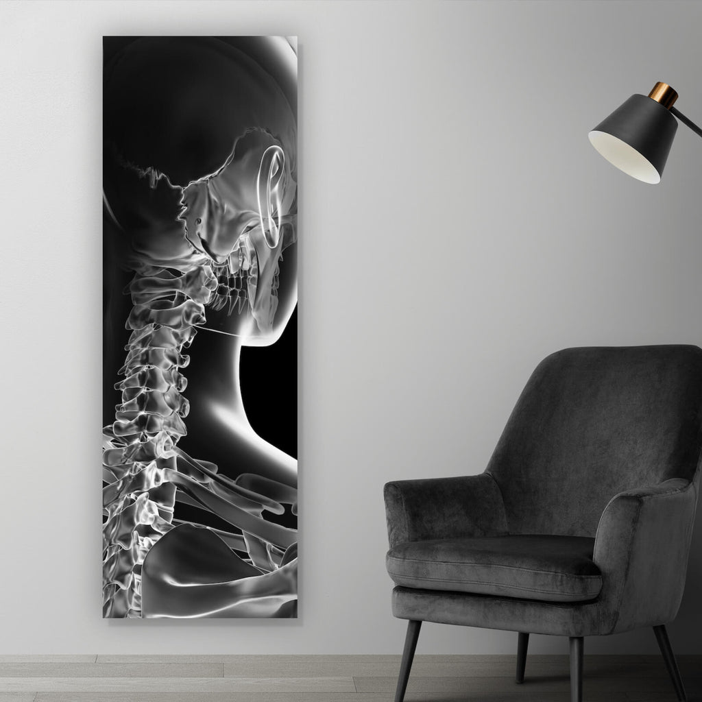 Auf der Suche nach einem ausgefallenen Wandbild als Spannrahmenbild? Das Motiv Anatomische Röntgenkunst im Panorama Hoch gefällt dir und du hast nach Wandbildern mit den Wörtern Mensch, Frau, Körper, Anatomie, Röntgen, Skelett, Wirbel, Wissenschaft, Struktur und Form gesucht? Dann ist dieses Spannrahmenbild in der Farbe Schwarz-Weiß genau das richtige Wandbild und Dekorelement für dich! Setze ein Highlight an deiner Wand! Das Spannrahmenbild Anatomische Röntgenkunst ist in 4 verschiedenen Größen verfügbar, von klein und dezent bis hin zum XXL Spannrahmenbild.