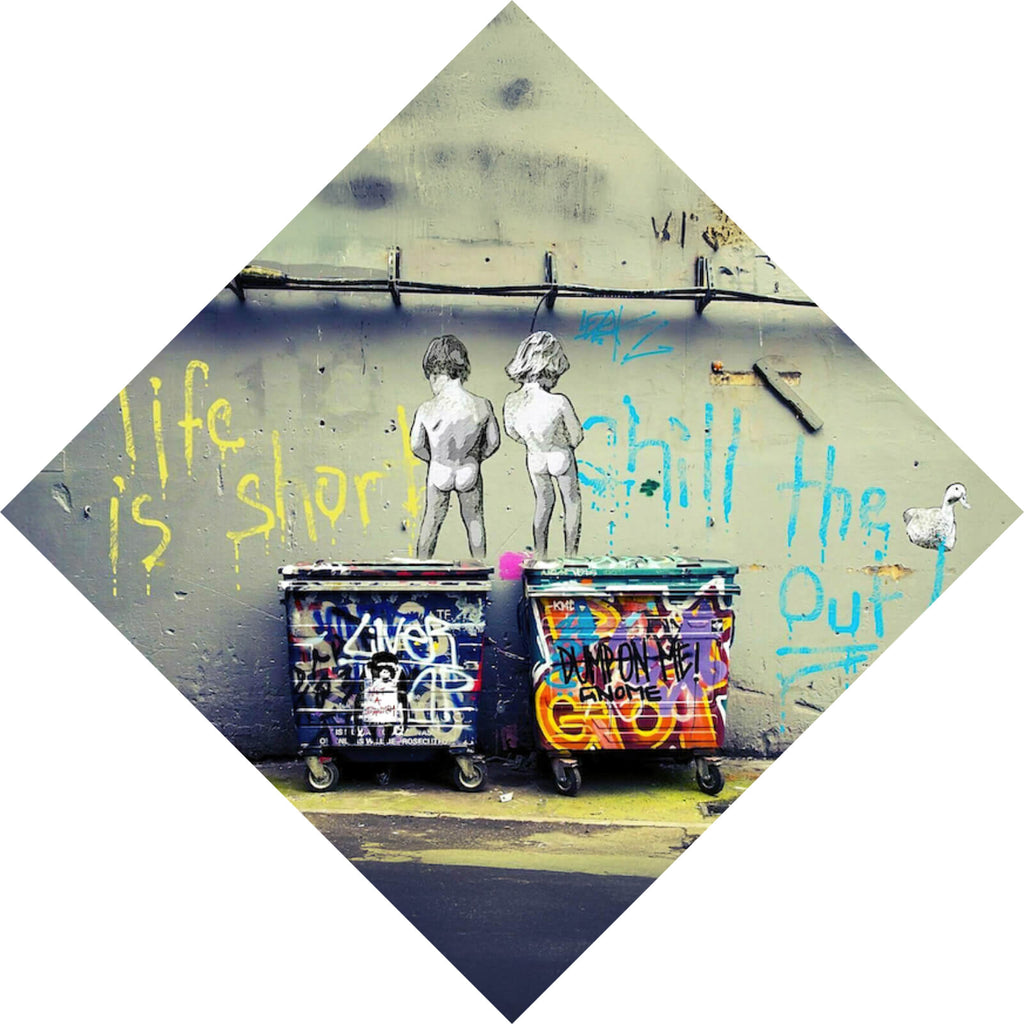 Auf der Suche nach einem ausgefallenen Wandbild als Spannrahmenbild? Das Motiv Banksy - Life is short als Raute gefällt dir und du hast nach Wandbildern mit den Wörtern Banksy, Life, Short, Chill, Duck, Out, Container, Graffiti und Street Art gesucht? Dann ist dieses Spannrahmenbild in der Farbe Bunt genau das richtige Wandbild und Dekorelement für dich! Setze ein Highlight an deiner Wand! Das Spannrahmenbild Banksy - Life is short ist in 4 verschiedenen Größen verfügbar, von klein und dezent bis hin zum XXL Spannrahmenbild.