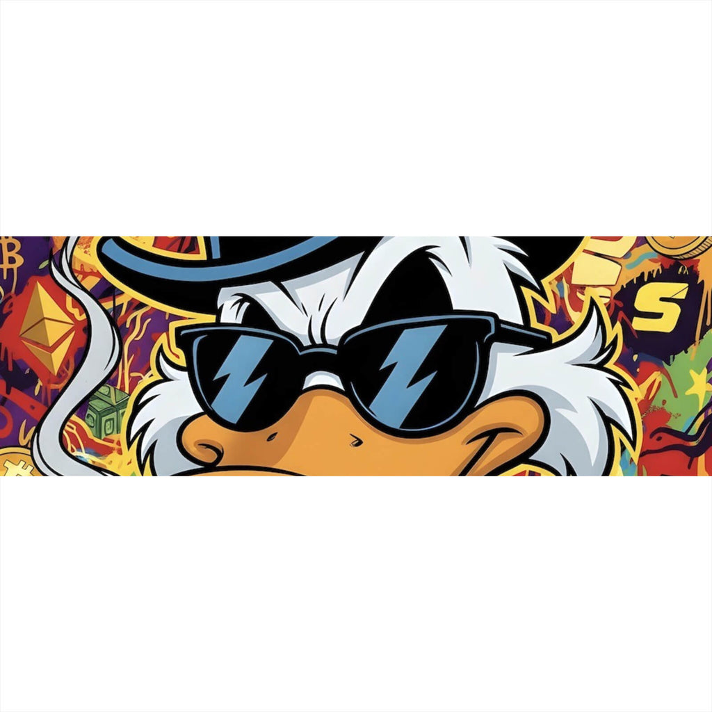 Dieses Wandbild zeigt eine ikonische Zeichentrickfigur in einem modernen Pop Art Stil, der die Themen Geld und Reichtum humorvoll in Szene setzt. Die Figur trägt einen hohen Hut mit auffälligen Dollarzeichen und hält eine Zigarre, was den Luxus und den Kapitalismus symbolisiert. Umgeben von verschiedenen Geldsymbolen und Banknoten vermittelt das Bild eine starke Aussage über Wohlstand und Erfolg. Der Comic-Stil kombiniert mit kräftigen Linien und dynamischen Formen schafft eine energiegeladene und lebendige Atmosphäre. Die Bildkomposition nutzt verschiedene Elemente aus der Popkultur, um eine fantasievolle und zugleich provokante Darstellung zu schaffen, die Aufmerksamkeit erregt und zum Nachdenken anregt. Ideal für moderne Wohnräume, Büros oder Bars, verleiht es jedem Raum eine besondere Note und dient als Gesprächsstarter. Die Mischung aus Humor und künstlerischem Ausdruck macht es zu einem vielseitigen Kunstwerk, das sowohl in persönlichen als auch in geschäftlichen Umgebungen einen einzigartigen Akzent setzt.