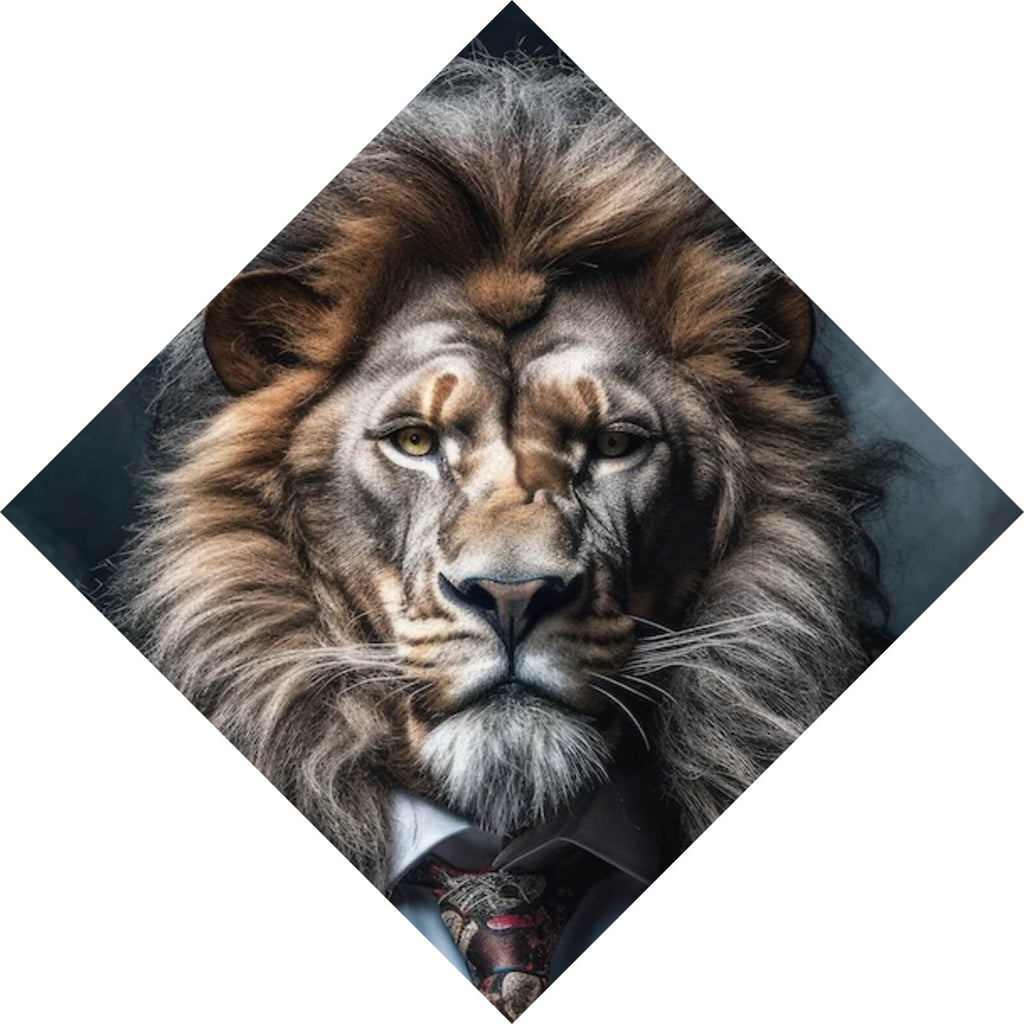 Auf der Suche nach einem ausgefallenen Wandbild als Spannrahmenbild? Das Motiv Edles Löwenporträt im eleganten Anzug als Raute gefällt dir und du hast nach Wandbildern mit den Wörtern Löwe, Tier, Stark, Wildnis, Anzug, Eleganz, Porträt, Stil, Charisma, Dekoration, Majestätisch, Kraft, Persönlichkeit und Modern Art gesucht? Dann ist dieses Spannrahmenbild in der Farbe Bunt genau das richtige Wandbild und Dekorelement für dich! Setze ein Highlight an deiner Wand! Das Spannrahmenbild Edles Löwenporträt im eleganten Anzug ist in 4 verschiedenen Größen verfügbar, von klein und dezent bis hin zum XXL Spannrahmenbild.