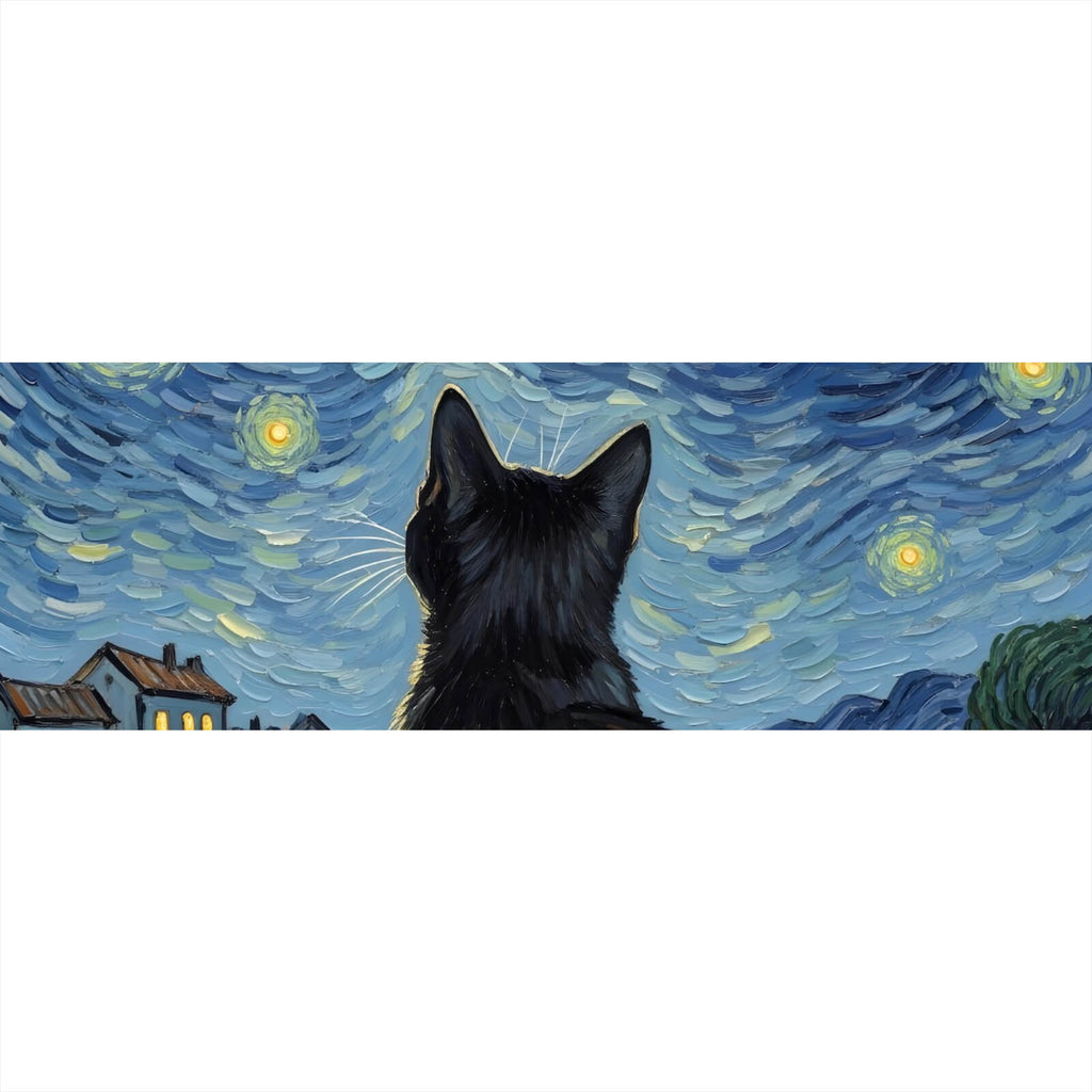 Dieses eindrucksvolle Wandbild zeigt eine Katze, die unter einem faszinierenden Sternenhimmel sitzt und eine ruhige Nachtlandschaft betrachtet. Die Szenerie ist in einem modernen Stil gehalten und vermittelt eine harmonische Verbindung zwischen Natur und Kunst. Die Katze sitzt am Ufer eines ruhigen Flusses, dessen Oberfläche die Lichter und Strukturen der umliegenden Architektur widerspiegelt. Der Himmel ist mit leuchtenden, spiralförmigen Sternen gestaltet, die eine dynamische und gleichzeitig beruhigende Wirkung erzeugen. Die Komposition des Bildes ermöglicht es dem Betrachter, eine tiefe Verbindung zur dargestellten Szene zu spüren, und lädt zur Entspannung und Reflexion ein. Die Kombination aus natürlichen Elementen und stilisierten Formen schafft eine einzigartige Atmosphäre, die sowohl inspirierend als auch beruhigend wirkt. Dieses Kunstwerk ist ideal für Räume, die eine kreative und inspirierende Dekoration benötigen, und es eignet sich hervorragend als Blickfang in Wohnzimmern, Schlafzimmern oder Büros. Die harmonische Balance zwischen Detailreichtum und abstrakter Gestaltung macht dieses Wandbild zu einem zeitlosen Kunstwerk, das in jedem Raum eine besondere Stimmung erzeugen kann.