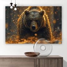 Auf der Suche nach einem ausgefallenen Wandbild als Spannrahmenbild? Das Motiv Kraftvoller Bär von Lichtreflexen umgeben im Querformat gefällt dir und du hast nach Wandbildern mit den Wörtern Bär, Wald, Abendlicht, Pelz, Wildnis, Tierwelt, Kraft, Wildlife, Stimmungsvoll, Waldboden, Herbst, Lichtreflexe, Golden, Stark und Imposant gesucht? Dann ist dieses Spannrahmenbild in den Farben Braun, Gold, Orange und Schwarz genau das richtige Wandbild und Dekorelement für dich! Setze ein Highlight an deiner Wand! Das Spannrahmenbild Kraftvoller Bär von Lichtreflexen umgeben ist in 4 verschiedenen Größen verfügbar, von klein und dezent bis hin zum XXL Spannrahmenbild.