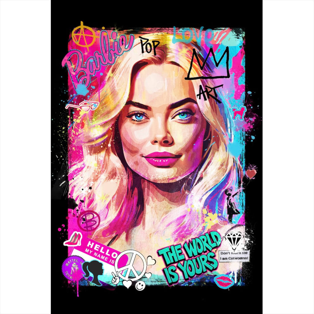 Dieses Wandbild ist ein eindrucksvolles Beispiel für moderne Pop Art, das durch seine urbanen Graffiti-Elemente besticht. Im Mittelpunkt steht ein ausdrucksstarkes Porträt, das durch seine künstlerische Darstellung und den Einsatz von markanten Formen und Linien hervorsticht. Die Kombination aus Pop Art und Graffiti verleiht dem Bild eine dynamische und lebendige Wirkung, die sofort ins Auge fällt und für Gesprächsstoff sorgt. Die verschiedenen Schriftzüge und Symbole, die das Porträt umgeben, tragen zur Vielschichtigkeit des Bildes bei und laden den Betrachter ein, sich intensiver mit den dargestellten Themen auseinanderzusetzen. Die Materialanmutung des Bildes suggeriert eine hochwertige Verarbeitung, die sich ideal in moderne Wohn- oder Arbeitsumgebungen einfügt. Durch die geschickte Verwendung von Kontrasten entsteht eine Tiefe, die dem Raum eine besondere Atmosphäre verleiht. Dieses Wandbild eignet sich hervorragend für Räume, die eine kreative und inspirierende Note erhalten sollen, sei es im Wohnzimmer, Büro oder in einer Bar. Die Kombination aus Persönlichkeit und künstlerischem Ausdruck macht dieses Bild zu einem idealen Dekorationselement für alle, die auf der Suche nach etwas Einzigartigem sind. Die starke Präsenz und der moderne Stil machen es zu einem echten Blickfang, der das Lebensgefühl und den individuellen Stil seines Besitzers unterstreicht.