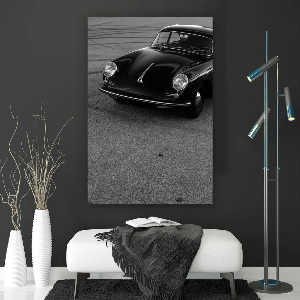 Auf der Suche nach einem ausgefallenen Wandbild als Spannrahmenbild? Das Motiv Sportwagen auf Rennstrecke im Hochformat gefällt dir und du hast nach Wandbildern mit den Wörtern Oldtimer, Fahrzeug, Auto, Sportwagen, Wagen, Klassiker, Technik, Luxus, Retro, Performance, Motor, Sport, Rennen und Strecke gesucht? Dann ist dieses Spannrahmenbild in der Farbe Schwarz-Weiß genau das richtige Wandbild und Dekorelement für dich! Setze ein Highlight an deiner Wand! Das Spannrahmenbild Sportwagen auf Rennstrecke ist in 4 verschiedenen Größen verfügbar, von klein und dezent bis hin zum XXL Spannrahmenbild.