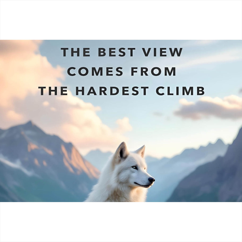 Dieses beeindruckende Wandbild zeigt einen majestätischen Wolf, der auf einem Felsen inmitten einer atemberaubenden Berglandschaft thront. Die Szene vermittelt eine tiefe Verbindung zur Natur und strahlt eine kraftvolle Ruhe und Gelassenheit aus. Der Wolf wirkt erhaben und würdevoll, während er über die Täler und Gipfel hinausschaut. Das Bild wird durch ein inspirierendes Zitat ergänzt, das an die Herausforderungen und Belohnungen des Lebens erinnert. Der Stil des Bildes ist modern und dennoch zeitlos, was es zu einer idealen Dekoration für verschiedene Wohn- und Arbeitsbereiche macht. Die Komposition zieht den Betrachter in die Tiefe der Landschaft und vermittelt ein Gefühl von Abenteuer und Freiheit. Die Materialanmutung des Bildes ist hochwertig und verleiht jedem Raum eine besondere Atmosphäre. Dieses Kunstwerk ist perfekt für all jene, die eine Verbindung zur Natur suchen und sich von der Stärke und Weisheit des Wolfes inspirieren lassen möchten. Die harmonische Darstellung von Tier und Landschaft schafft ein beruhigendes Ambiente und lädt zum Träumen und Nachdenken ein. Ein ideales Stück für alle, die Wert auf stilvolle und bedeutungsvolle Dekoration legen.