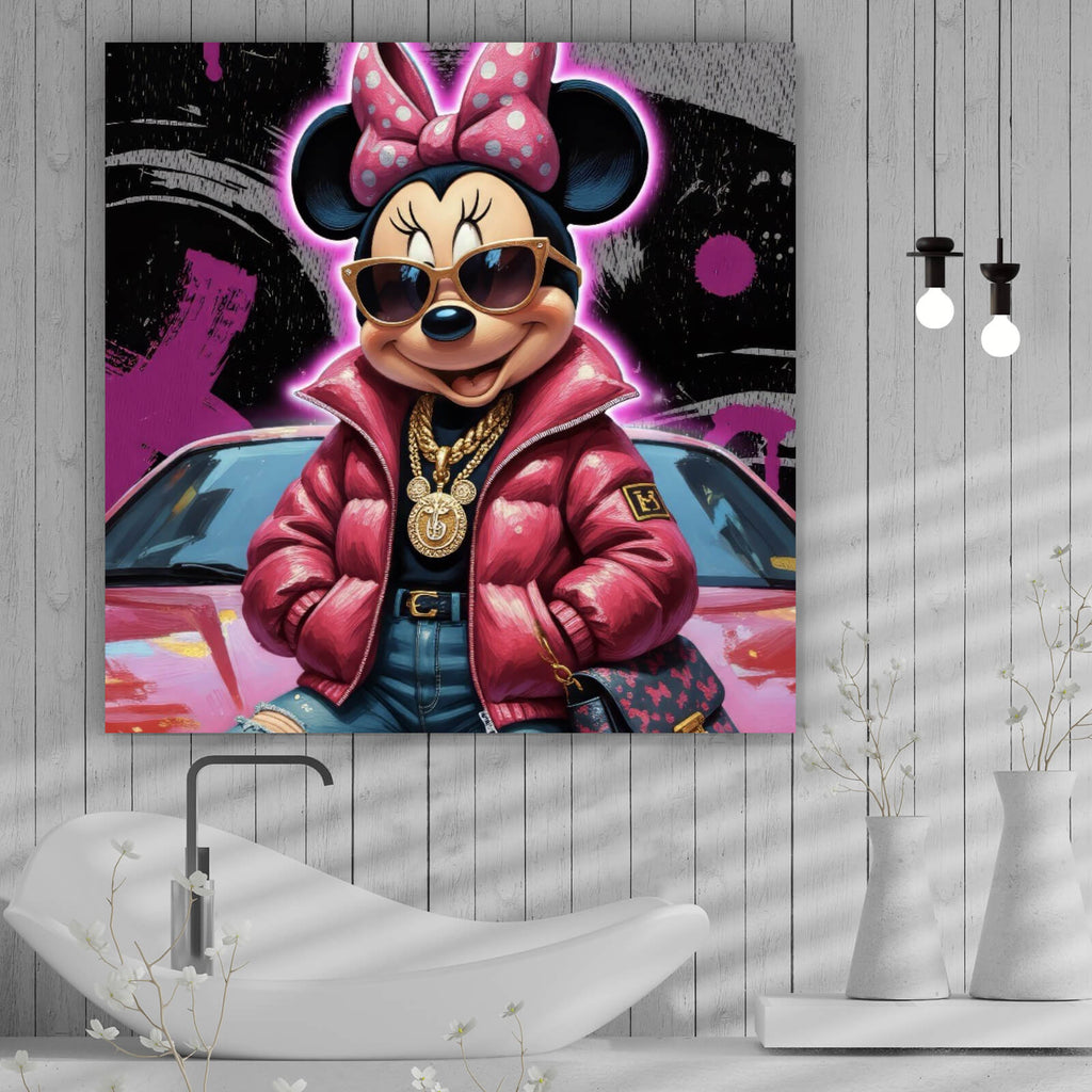 Auf der Suche nach einem ausgefallenen Wandbild als Spannrahmenbild? Das Motiv Zeichentrickfigur Fashion mit Sonnenbrille und Jacke No.4 im Quadrat gefällt dir und du hast nach Wandbildern mit den Wörtern Maus, Cartooncharakter, Kultfigur, Fashion, Sonnenbrille, Goldkette, Modeaccessoires, Zeichentrick, Trend, Luxus, Hip-Hop, Streetwear, Comicfigur, Modeillustration, Stil-Ikone, Accessoire-Trend, Streetfashion, Modebewusst, Jacke, Hip Hop, Outfit und Auto gesucht? Dann ist dieses Spannrahmenbild in den Farben Grau, Schwarz, Pink und Lila genau das richtige Wandbild und Dekorelement für dich! Setze ein Highlight an deiner Wand! Das Spannrahmenbild Zeichentrickfigur Fashion mit Sonnenbrille und Jacke No.4 ist in 4 verschiedenen Größen verfügbar, von klein und dezent bis hin zum XXL Spannrahmenbild.